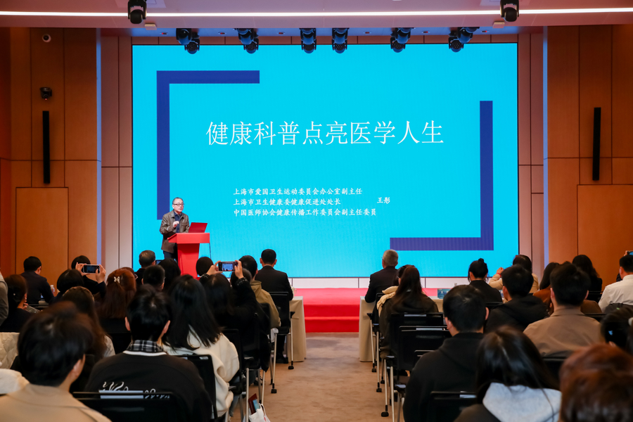市卫健委健促处处长王彤以《医学科普点亮健康人生》为题,深度解读健康中国战略下科普工作的时代使命,强调新时代医务工作者需打破医学知识壁垒,以“专业+温度”让科普成为全民健康的“第一道防线”,为健康上海建设注入持久动力。